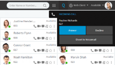 • Utilize a visualização de Recepcionista para administrar chamadas, então arraste e solte chamadas para uma transferência ágil.